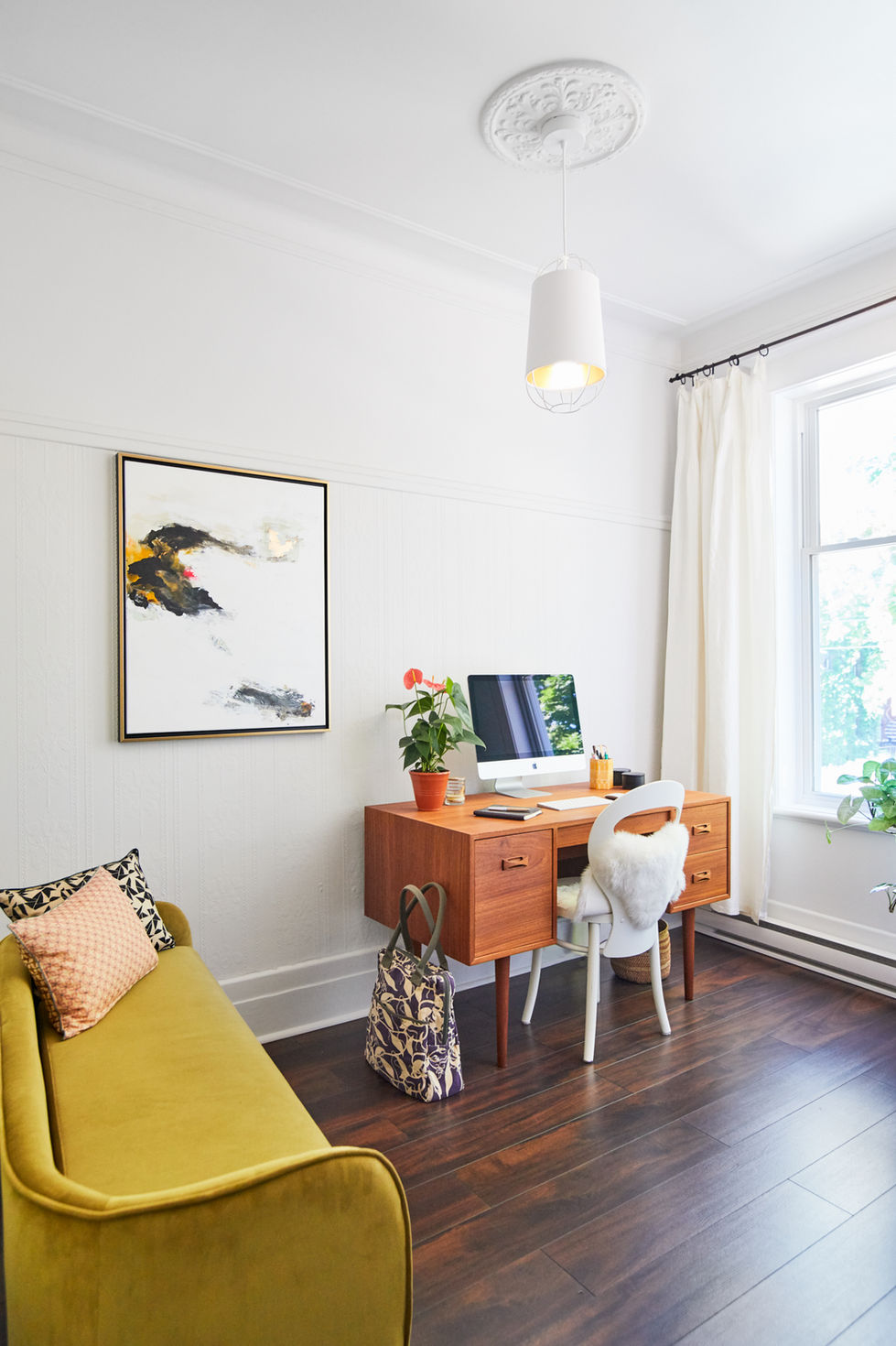 Le défi de cet appartement situé dans un triplex montréalais typique : faire jaillir la vie dans une enveloppe de murs blancs, de plancher sombre et de portes grises.